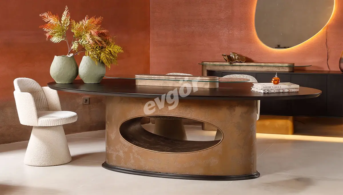 Alaska Lüks Yemek Masası asaletli ve göz alıcı tasarımı ile Evgör Mobilya'da sizleri bekliyor.