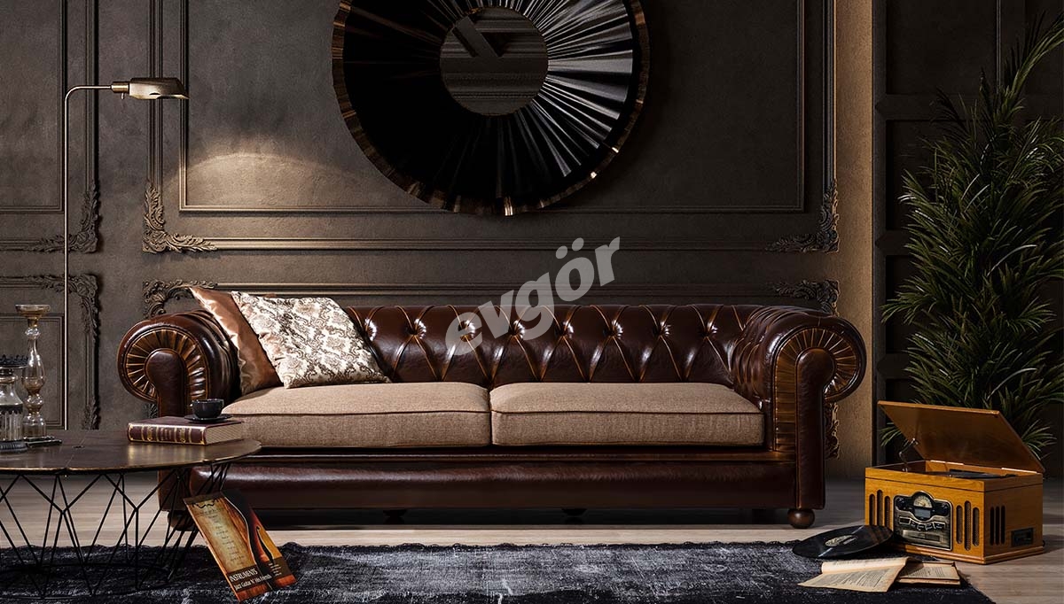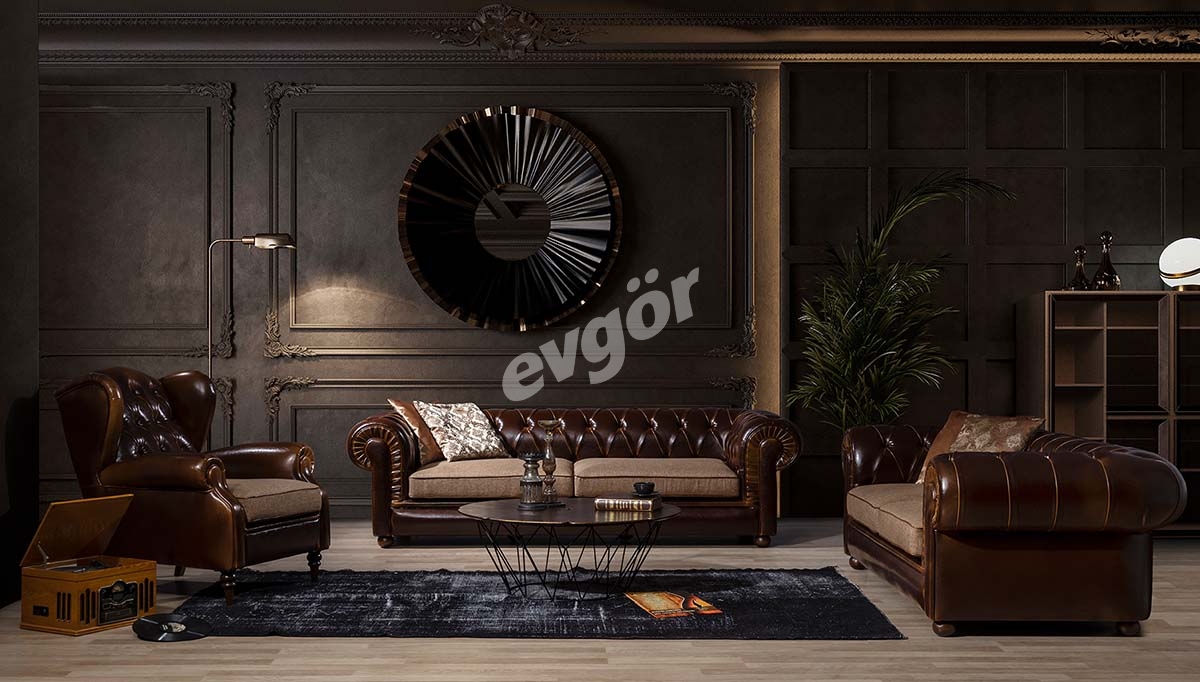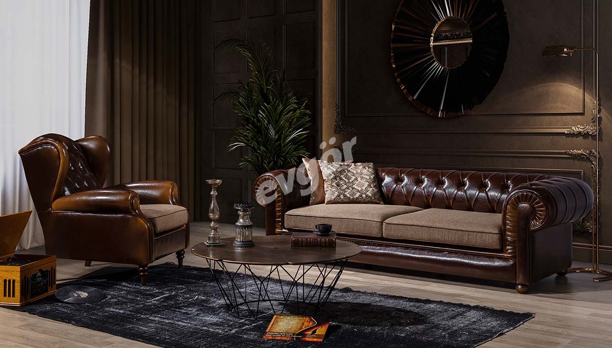Klasik deri koltuk takımları, zamansız tasarımları ve kaliteli işçilikleri ile dikkat çeker. Genellikle koyu renklerde olan bu koltuklar, ahşap detaylarla süslenmiş olup, lüks bir görünüm sağlar.
