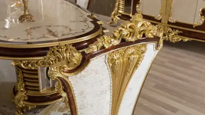 Andorya Ceviz Klasik Yemek Odası takımı Konsol + Ayna, Yemek Masası ve 6 adet Sandalye'den oluşmaktadır.