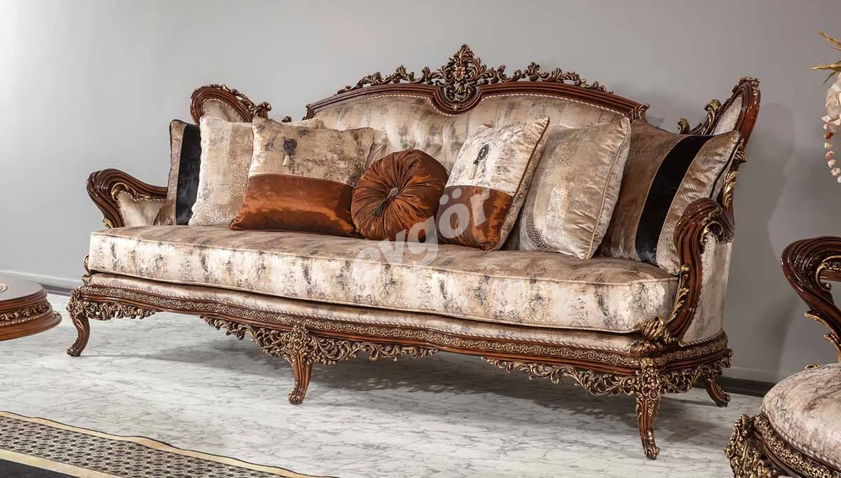 Asya Ceviz Klasik Üçlü Koltuk asaletli ve göz alıcı tasarımı ile Evgör Mobilya'da sizleri bekliyor.