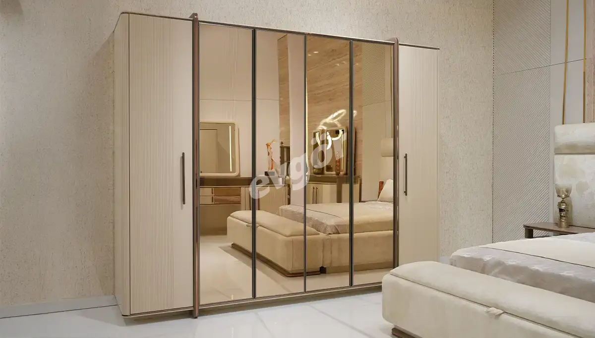 Ürünümüz Gardırop, Karyola, Şifonyer, Şifonyer Aynası ve 2 adet Komodin kombinasyonundan oluşmaktadır.