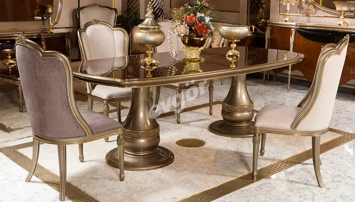 Barbaros Lüks Yemek Odası, asaleti ve göz alıcı tasarımı ile Evgör Mobilya'da sizleri bekliyor.