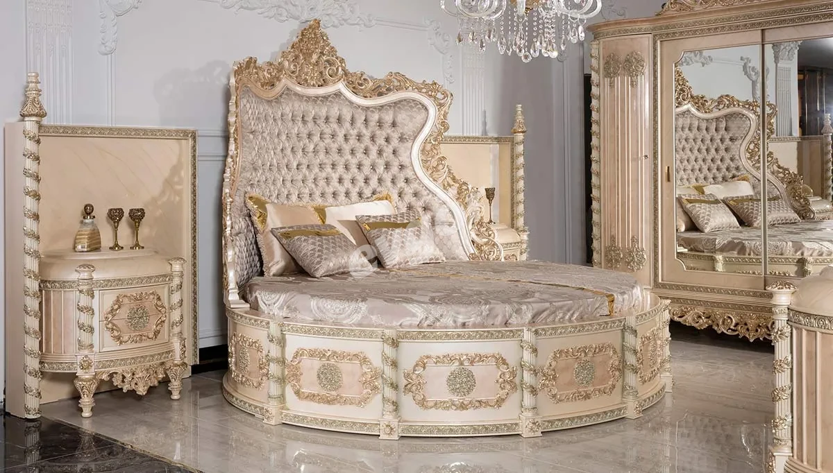 Beyazıt Krem Klasik Yuvarlak Karyola, şıklığı ve göz alıcı tasarımı ile yatak odanızın vazgeçilmezi olacak.