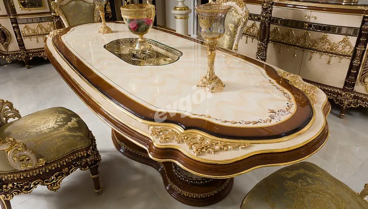 Firuze Klasik Yemek Odası asaletli ve göz alıcı tasarımı ile Evgör Mobilya'da sizleri bekliyor.