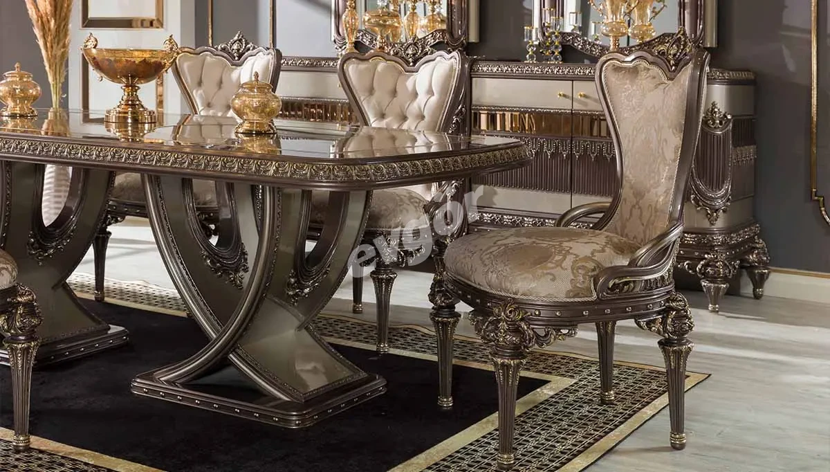 Hanzade Krem Klasik Yemek Odası şık tasarımı ile kalitenin adresi Evgör Mobilya'da.