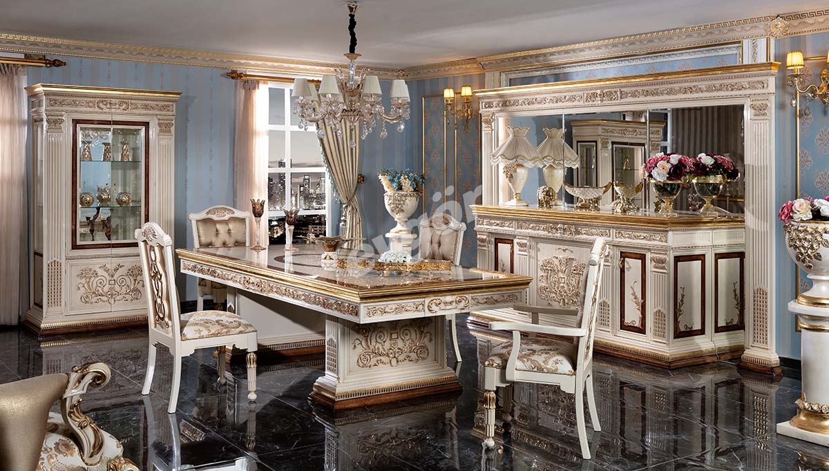 İmparator Klasik Yemek Odası şık tasarımı ile odanızın havasını değiştirecek olan bu ürün rakipsiz fiyatların değişmeyen adresi Evgör Mobilyada.