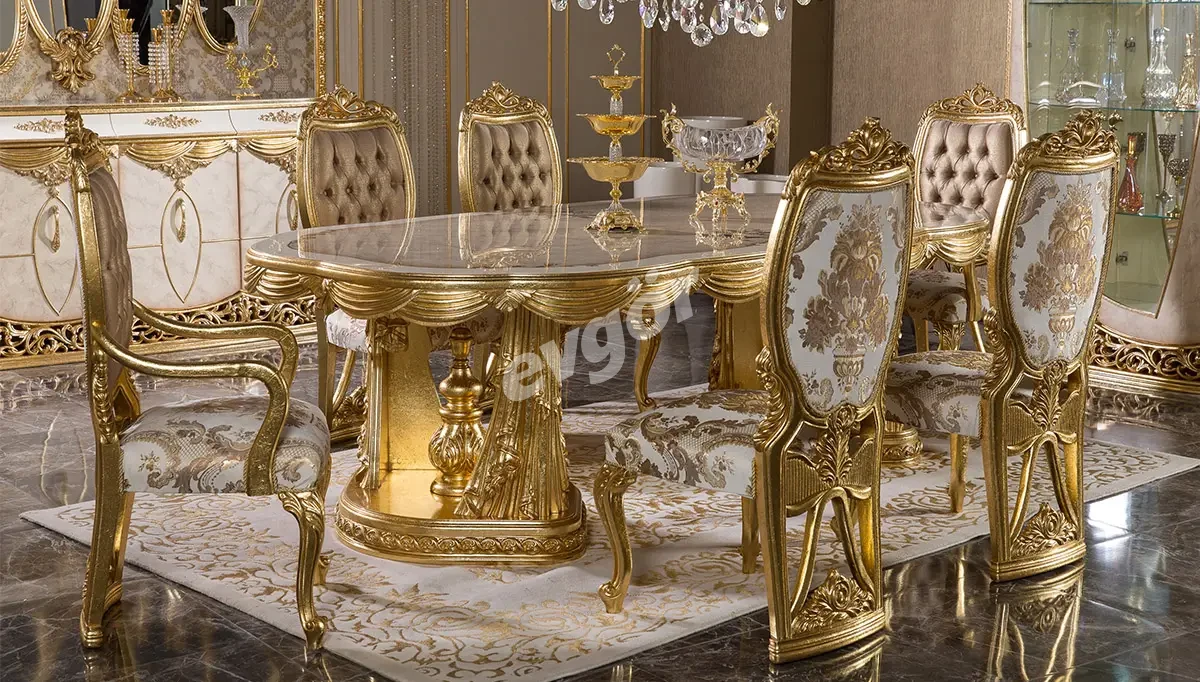 Mihrimah Klasik Yemek Masası, şıklığı ve göz alıcı tasarımı ile salonunuzun vazgeçilmezi olacak.