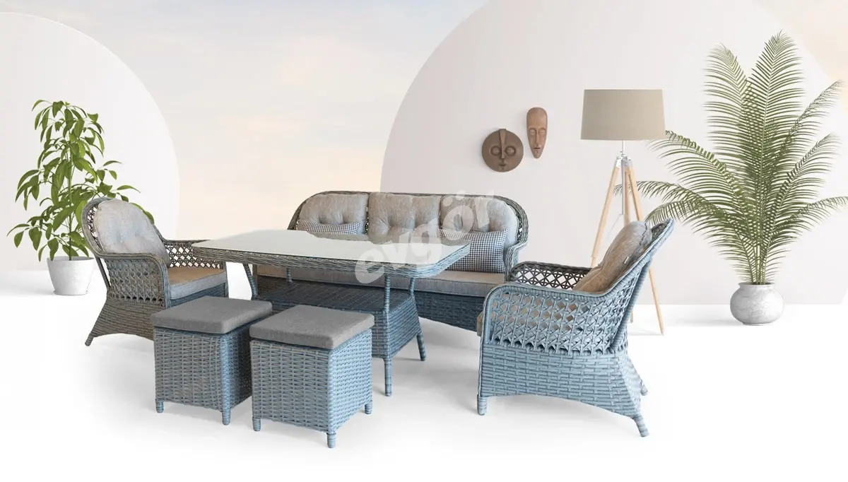 Ürünümüzün görsellerinde yer alan 2 adet Rattan Puf ve Aksesuarlar fiyata dahil değildir, opsiyonel olarak satışa sunulmuştur.