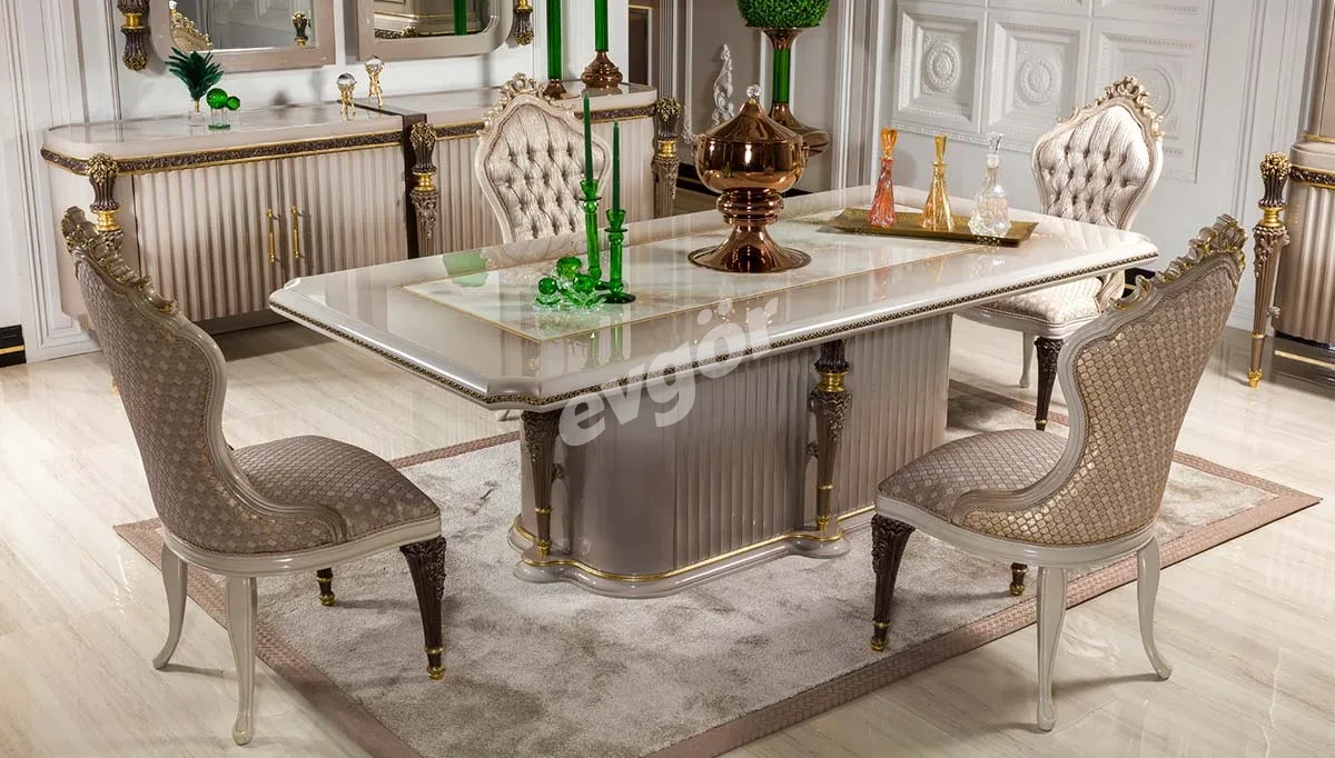 Truva Krem Lüks Yemek Masası