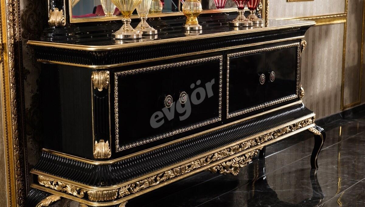 Sadrazam Klasik Yemek Odası, şık tasarımı ile odanızın havasını değiştirecek olan bu ürün rakipsiz fiyatların değişmeyen adresi Evgör Mobilyada.