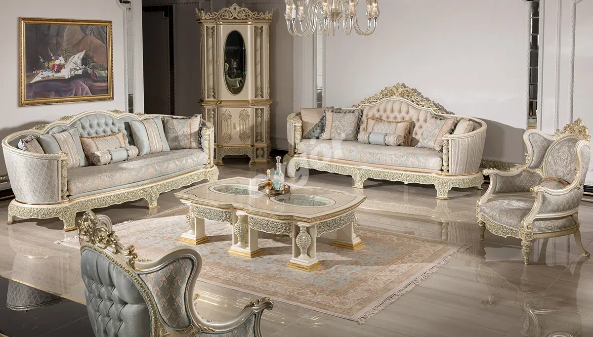 Şahmaran Beyaz Klasik Koltuk Takımı, şıklığı ve göz alıcı tasarımı ile salonunuzun vazgeçilmezi olacak.