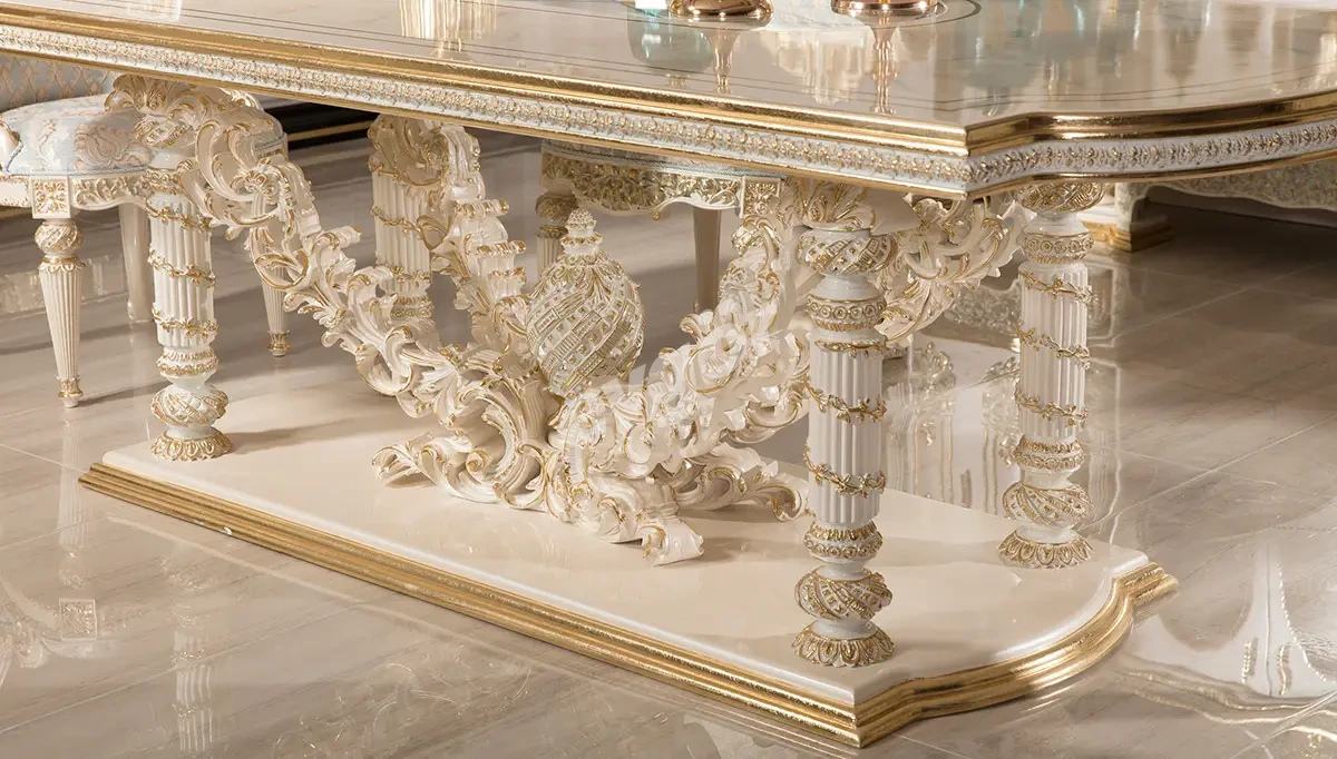 Şahmaran Beyaz Klasik Yemek Odası, şıklığı ve göz alıcı tasarımı ile salonunuzun vazgeçilmezi olacak.
