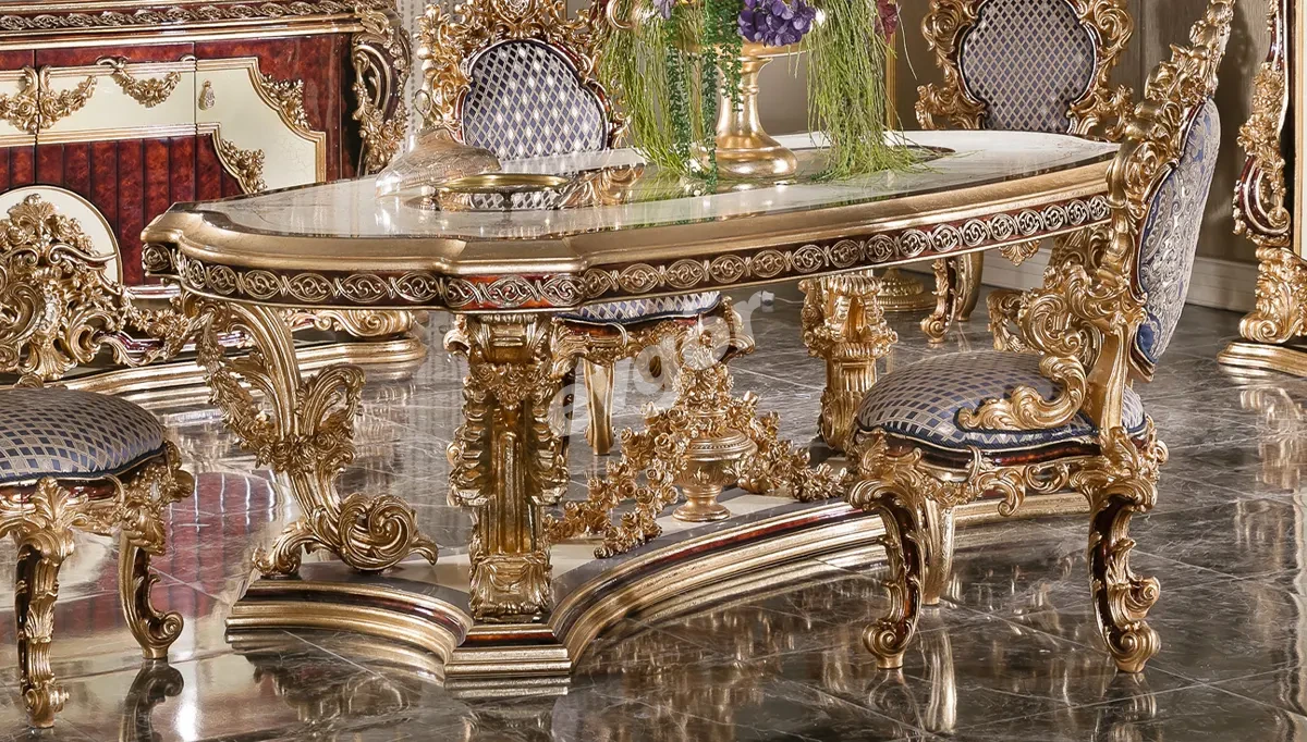 Sultan Klasik Yemek Masası, şıklığı ve göz alıcı tasarımı ile salonunuzun vazgeçilmezi olacak.