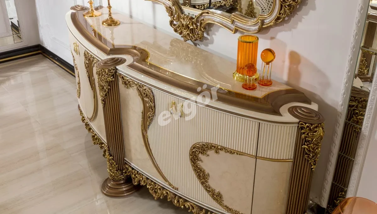Tuğra Klasik Yemek Odası, şıklığı ve göz alıcı tasarımı ile salonunuzun vazgeçilmezi olacak.