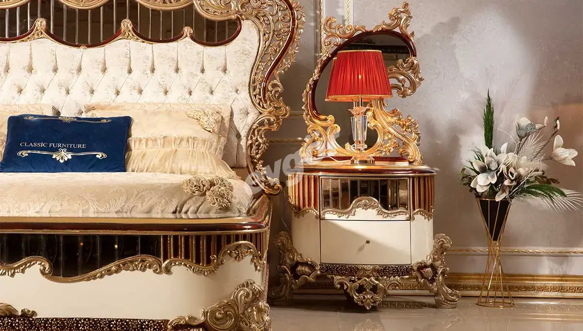 Klasik Yatak Odası parçaları arasında bulunan şık Yatak, Komodin, Şifonyer ve Gardırop varaklı tasarımların klasik estetiğiyle birleşerek benzersiz bir stili de sizlere sunuyor.