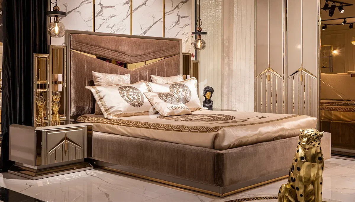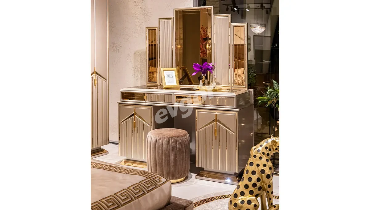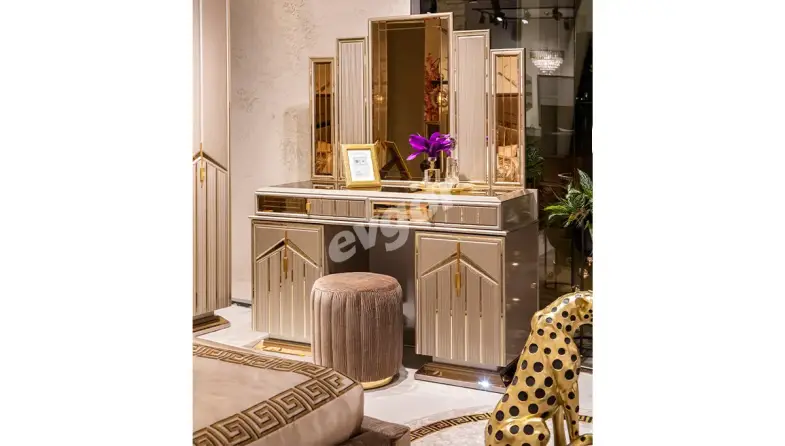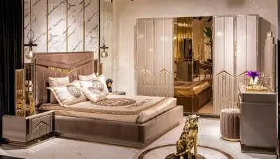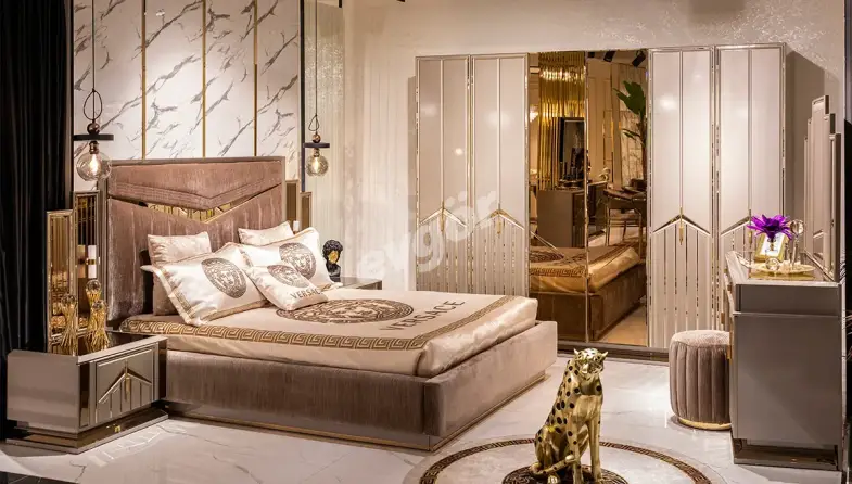 Lüks yatak odası takımları ışıltılı renkleri ile dikkat çeker. Elbise dolabı kapaklarında alışılagelmişin dışına çıkılan ürünlerde, düz tasarımların yerini girintili çıkıntılı, bombeli kapak yüzeyleri almıştır. Lüks tasarım yatak odası takımlarında altın renginin kullanımı yaygındır. Bu renk daha çok beyaz, bronz gibi tonlarla harmanlanarak takımlardaki yerini alır.