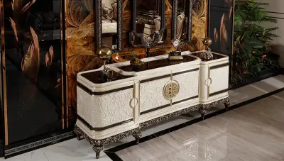 Ürünümüz Konsol, Yemek Masası, 6 adet Sandalye ve Ayna Seti kombinasyonundan oluşmaktadır.