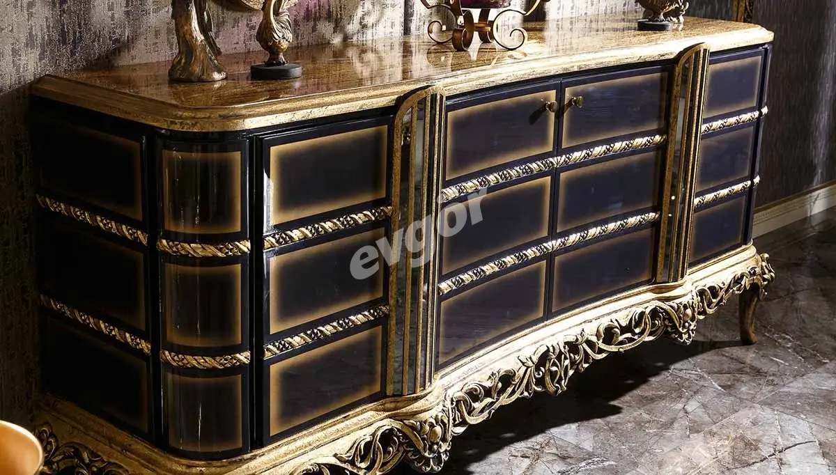 Kamelya Siyah Klasik Yemek Odası