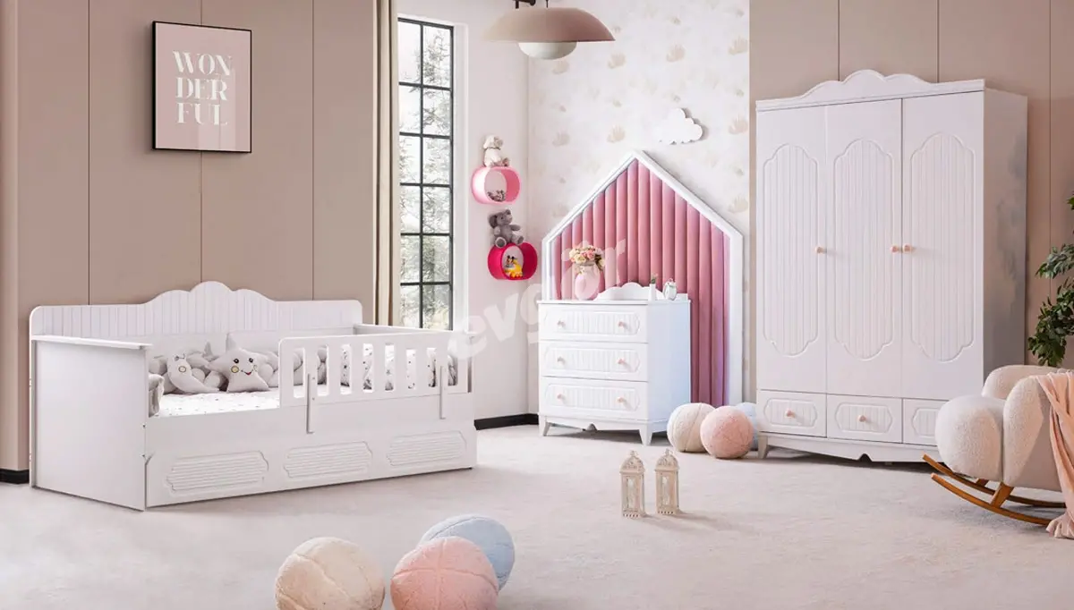 Çiçek Çocuk Odası şık ve kullanışlı tasarımı ile kalitenin adresi Evgör Mobilya'da.