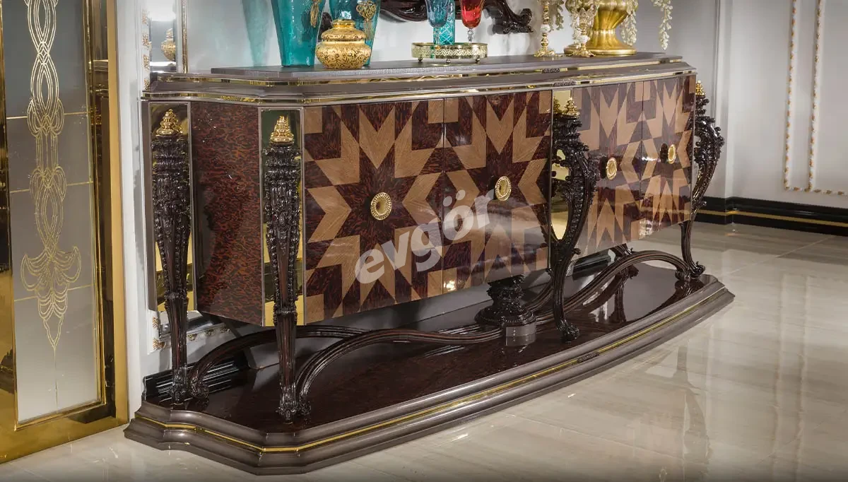 Crown Desenli Klasik Konsol + Ayna , şıklığı ve göz alıcı tasarımı ile salonunuzun vazgeçilmezi olacak.