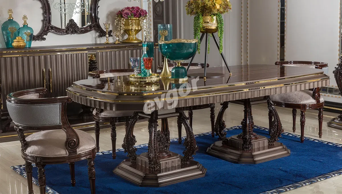 Crown Klasik Yemek Masası, şıklığı ve göz alıcı tasarımı ile salonunuzun vazgeçilmezi olacak.