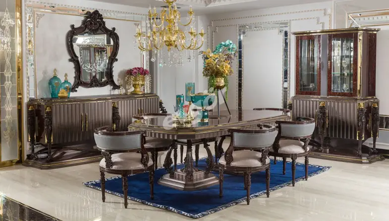 Crown Klasik Yemek Odası, şıklığı ve göz alıcı tasarımı ile salonunuzun vazgeçilmezi olacak.