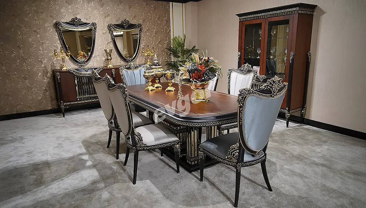 Destina Ceviz Klasik Yemek Odası asaletli ve göz alıcı tasarımı ile Evgör Mobilya'da sizleri bekliyor.