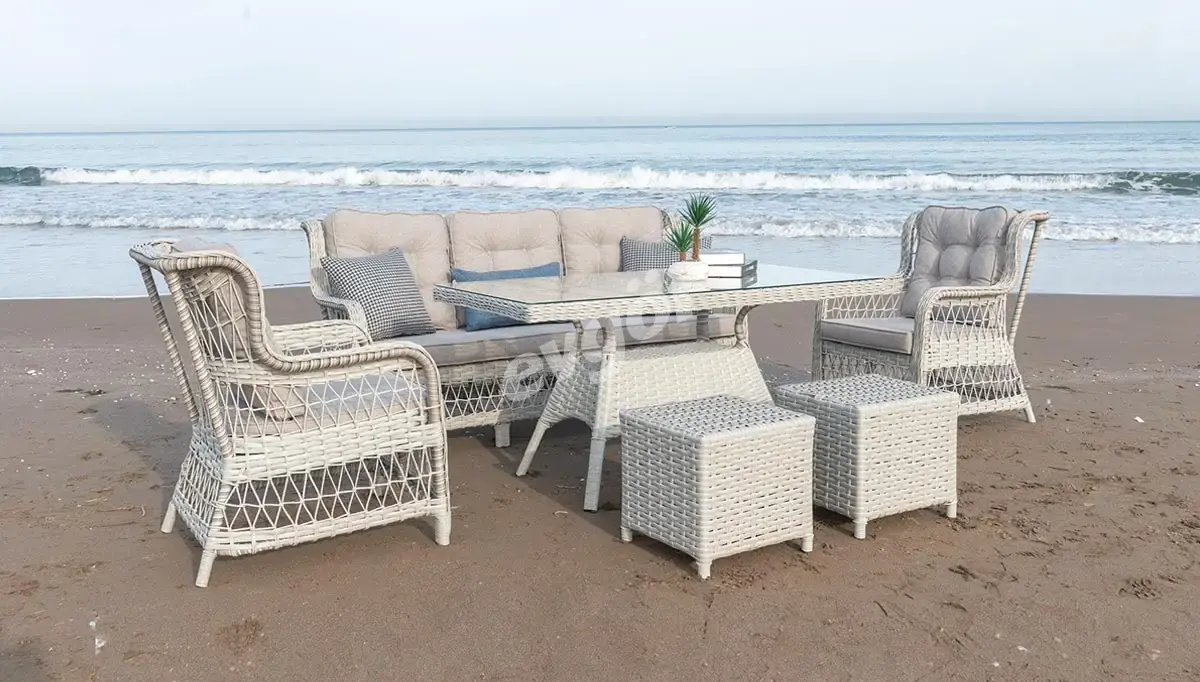 Kullanılan malzemenin örgü kısımları tamamen wintech rattan malzemeden üretilmektedir ve doğal malzeme kullanımı ön plandadır.