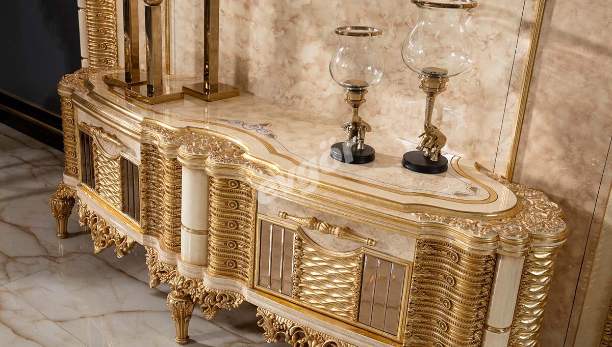 Dolmabahçe Krem Avangarde TV Sehpası asaletli tasarımı ile göz kamaştırıyor.