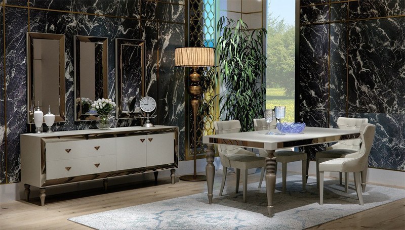 Şık ve lüks bir yemek odası takımı arayanlar için son dönemin modası mermer yemek masaları çok tercih edilmektedir. 2018 tasarımının öne çıkan modellerinden mermer yemek masası ve yemek odası takımları alanlarınıza şık bir görünüm katarken tasarımı ön plana çıkarmayı amaçlamaktadır.