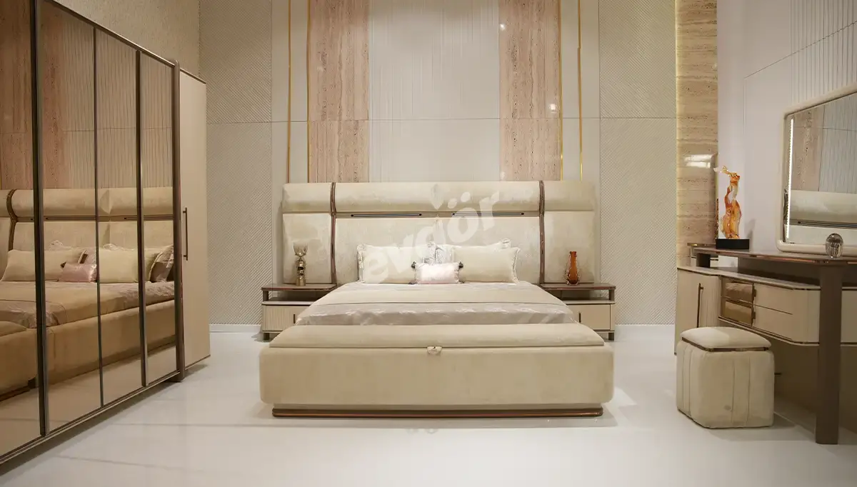 Ürünümüz Gardırop, Karyola, Şifonyer, Şifonyer Aynası ve 2 adet Komodin kombinasyonundan oluşmaktadır.