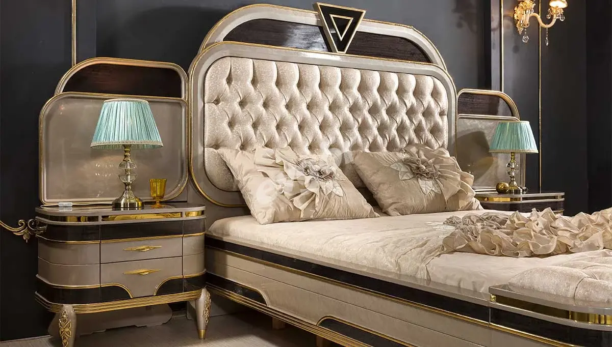 Lüks Yatak Odası parçalarından şık Yatak, Komodin, Şifonyer ve Gardırop modern tasarımların lüks estetiğiyle birleşerek benzersiz bir stili de sizlere sunuyor.