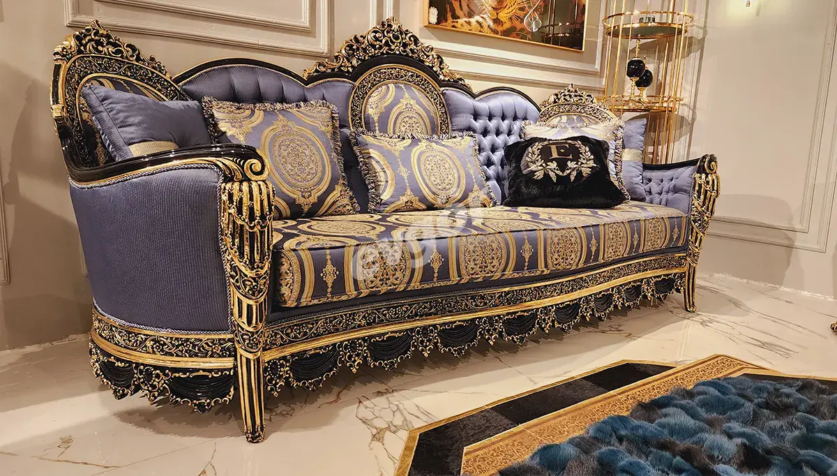 Fethiye Mavi Klasik Üçlü Koltuk, şıklığı ve göz alıcı tasarımı ile salonunuzun vazgeçilmezi olacak.