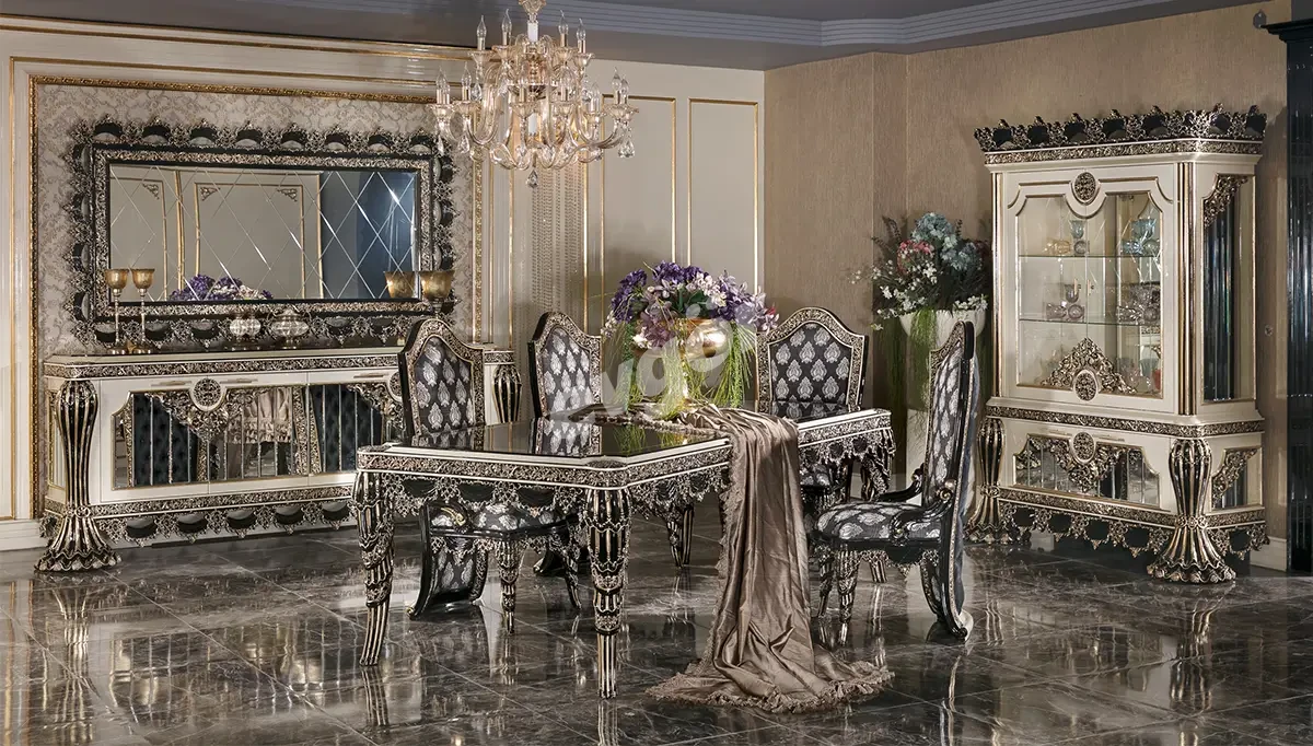 Fethiye Siyah Klasik Yemek Odası, şıklığı ve göz alıcı tasarımı ile salonunuzun vazgeçilmezi olacak.