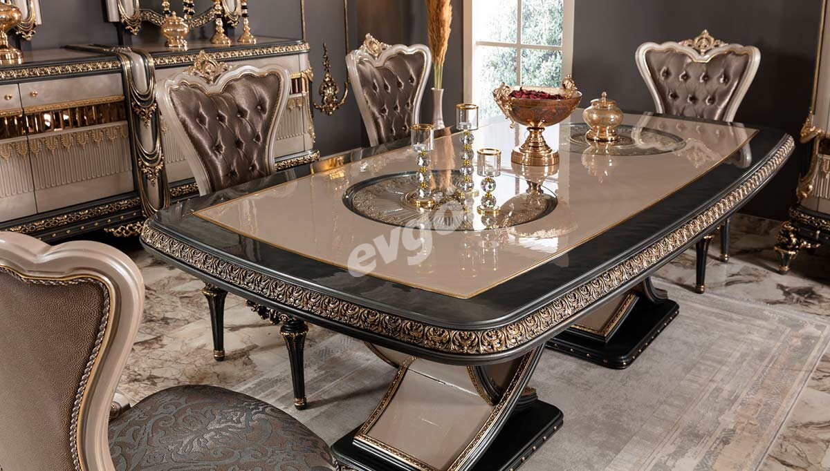 Hanzade Klasik Yemek Masası şık tasarımı ile kalitenin adresi Evgör Mobilya'da.