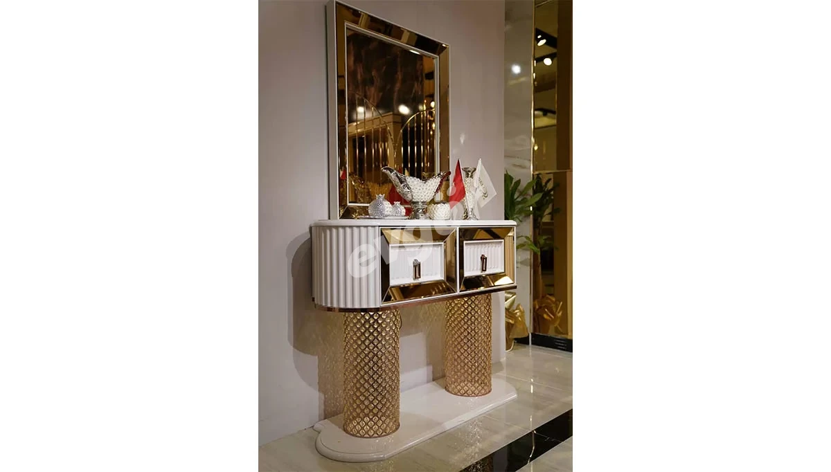 Ürünümüz takım olarak Konsol+Ayna, Yemek Masası ve 6 adet Sandalye kombinasyonundan oluşmaktadır.