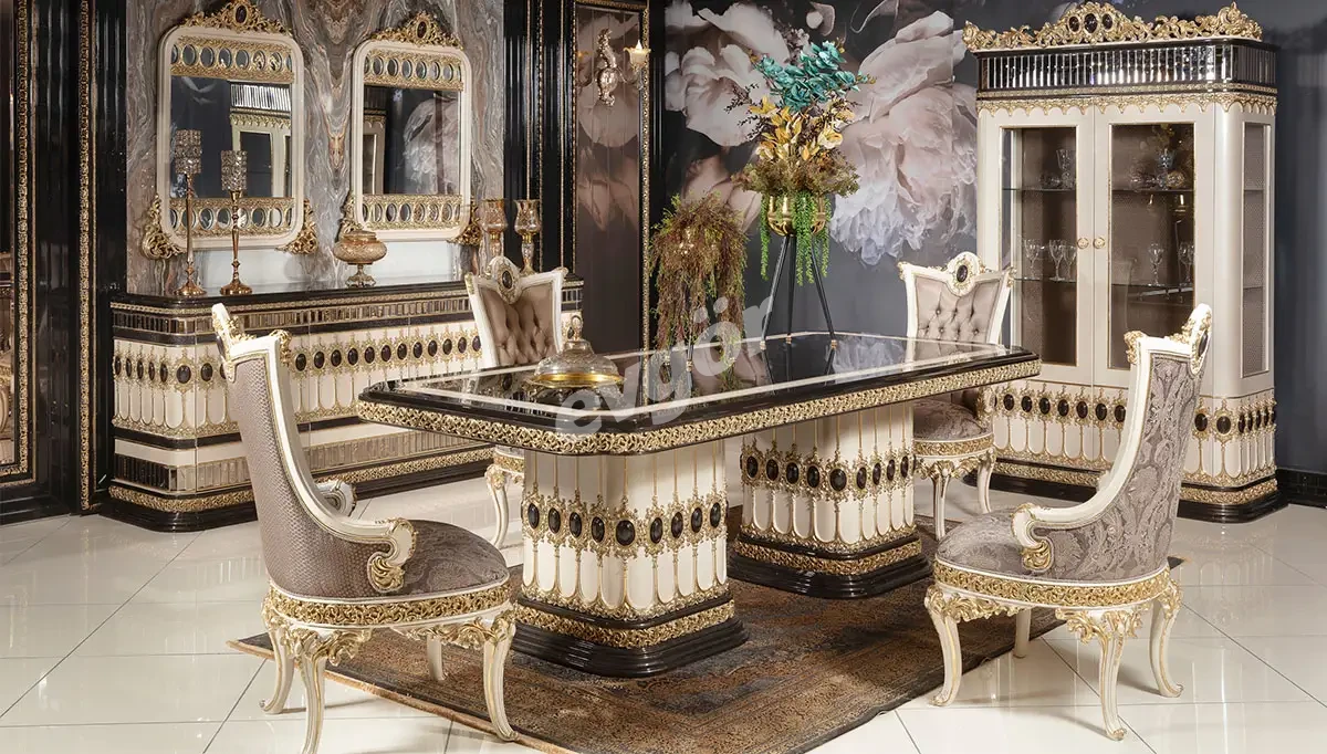 Küheylan Klasik Yemek Odası, şıklığı ve göz alıcı tasarımı ile salonunuzun vazgeçilmezi olacak.