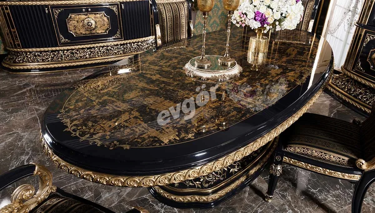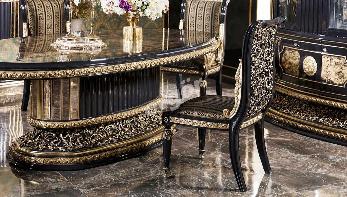 Kamelya Siyah Klasik Yemek Odası