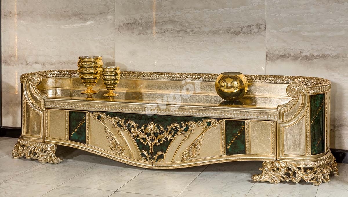 Salonunuza uyum sağlayacak yeşil kadife kumaşı, gösterişli varak detayları ve aksesuarlarıyla muhteşem bir seçenek sunuyor.