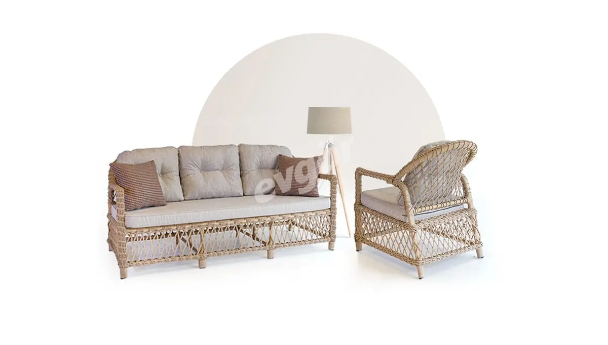 Kullanılan malzemenin örgü kısımları tamamen wintech rattan malzemeden üretilmektedir ve doğal malzeme kullanımı ön plandadır.
