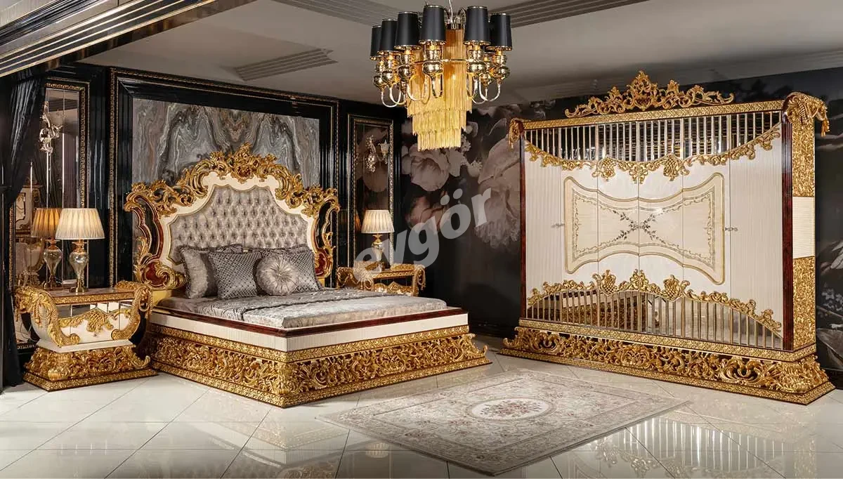 Taç Mahal Klasik Yatak Odası, şıklığı ve göz alıcı tasarımı ile yatak odanızın vazgeçilmezi olacak.