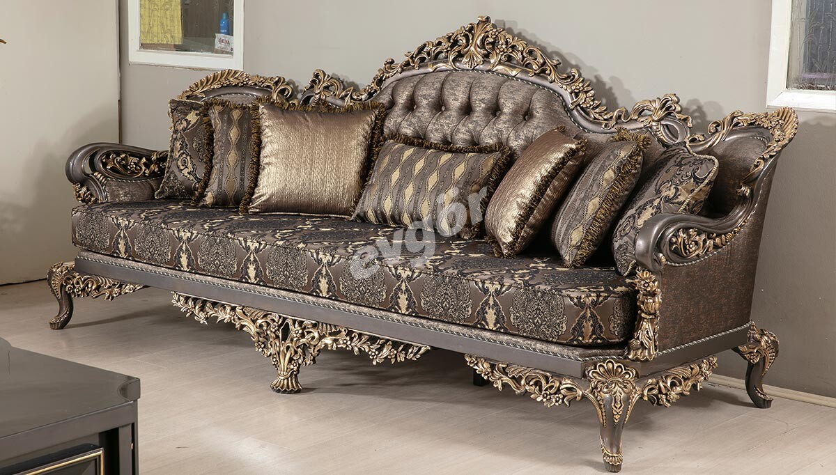 Zarafet Klasik Üçlü Koltuk, odalarınızın havasını değiştirecek olan bu şık konsept kalitenin adresi Evgör Mobilyada.