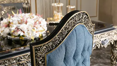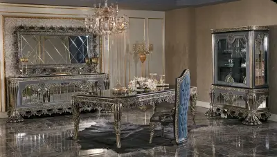 Fethiye Mavi Klasik Yemek Odası, şıklığı ve göz alıcı tasarımı ile salonunuzun vazgeçilmezi olacak.