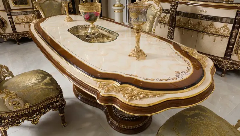 Firuze Klasik Yemek Masası asaletli ve göz alıcı tasarımı ile Evgör Mobilya'da sizleri bekliyor.