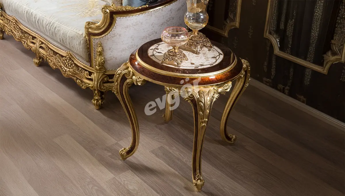 Andorya Ceviz Klasik Yan Sehpa Koltuk Takımı göz kamaştırıcı tasarımı ile evinizin havasını değiştirecek.