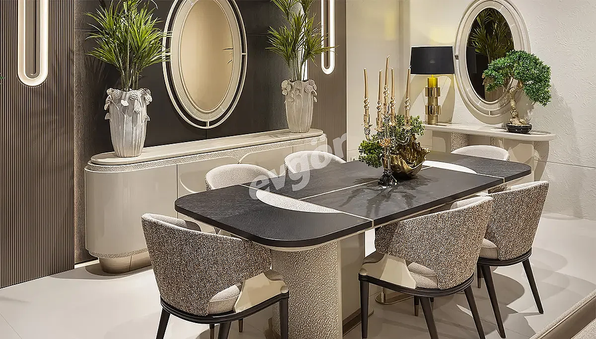 Estetik ve zarafetin en yüksek seviyede buluştuğu Lüks Yemek Odası Takımı ile, yaşam alanınıza göz alıcı bir dokunuş katıyoruz.