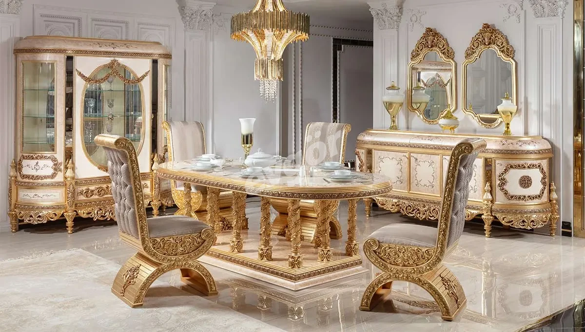 Beyazıt Klasik Yemek Odası, şıklığı ve göz alıcı tasarımı ile salonunuzun vazgeçilmezi olacak.