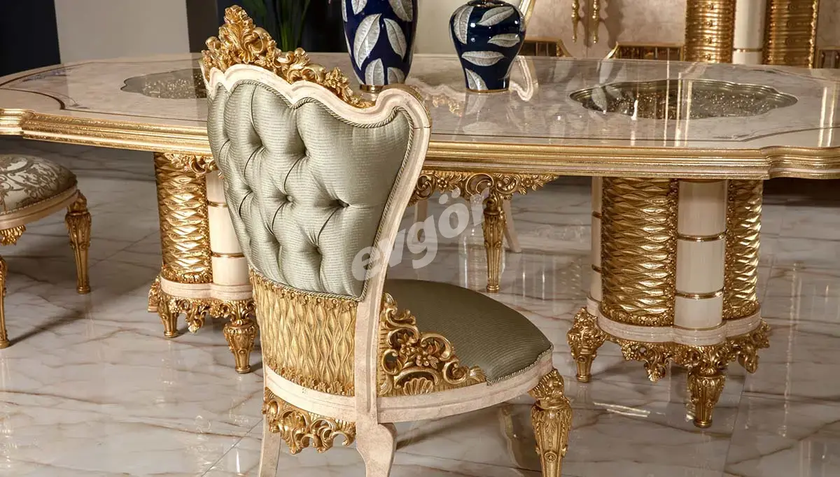 Dolmabahçe Krem Avangarde Yemek Odası asaletli tasarımı ile göz kamaştırıyor.