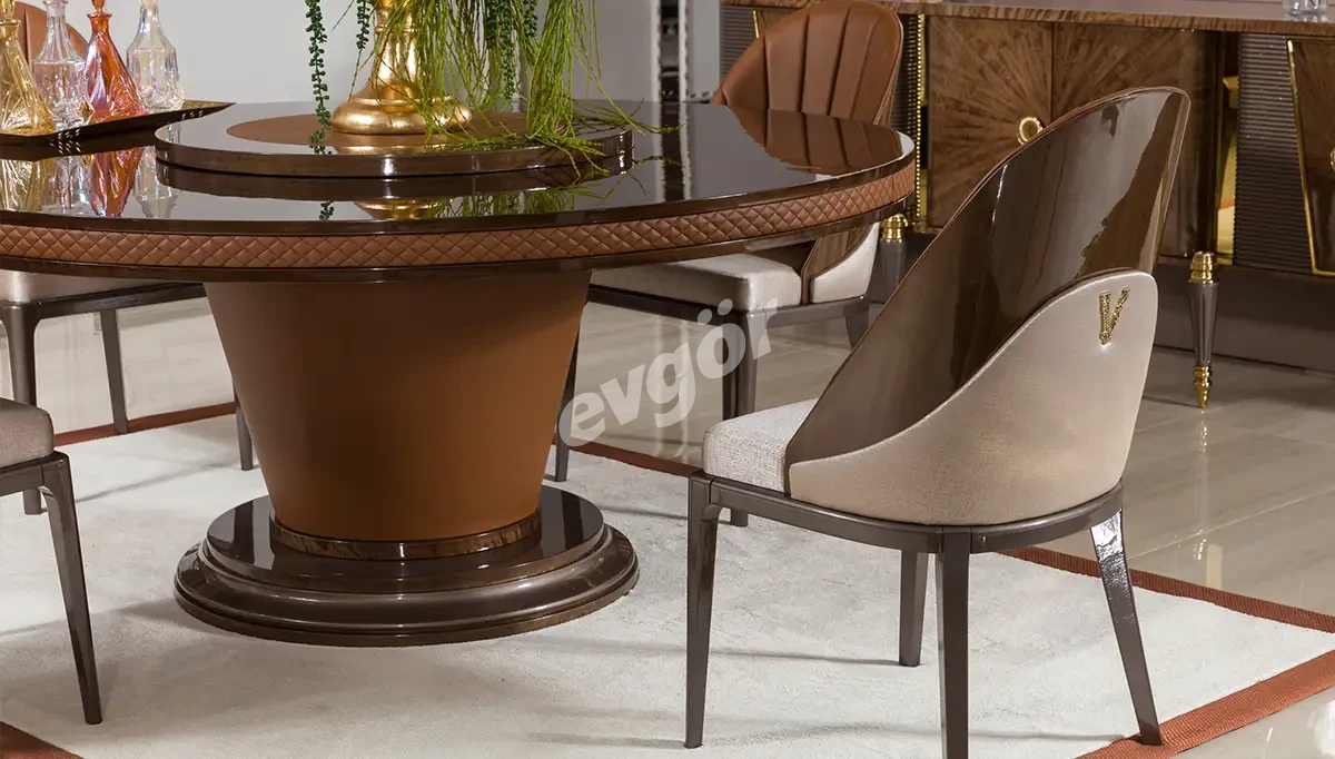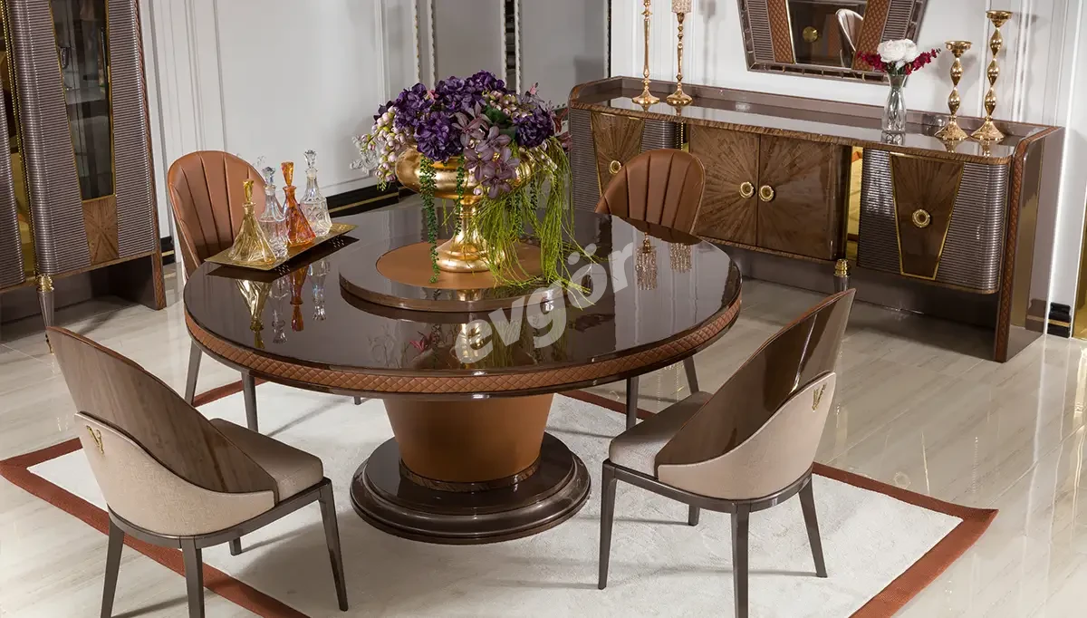 Dubai Yuvarlak Masalı Yemek Odası, şıklığı ve göz alıcı tasarımı ile salonunuzun vazgeçilmezi olacak.