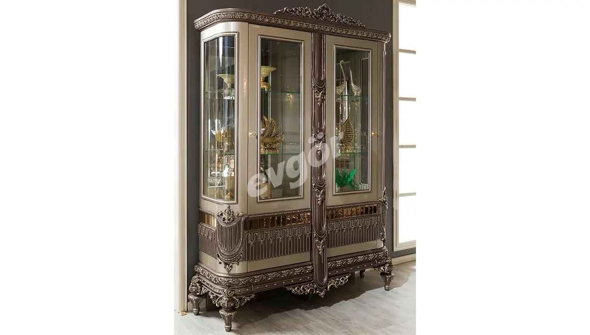 Hanzade Krem Klasik Yemek Odası şık tasarımı ile kalitenin adresi Evgör Mobilya'da.